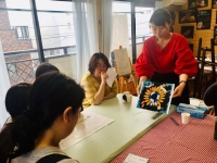 オリジナルのおしゃべりカートを使い、夏らしいひまわりの絵を見ながら 楽しい物語を作り、その後チョークアートでカラフルなアイス描きも楽しめます!